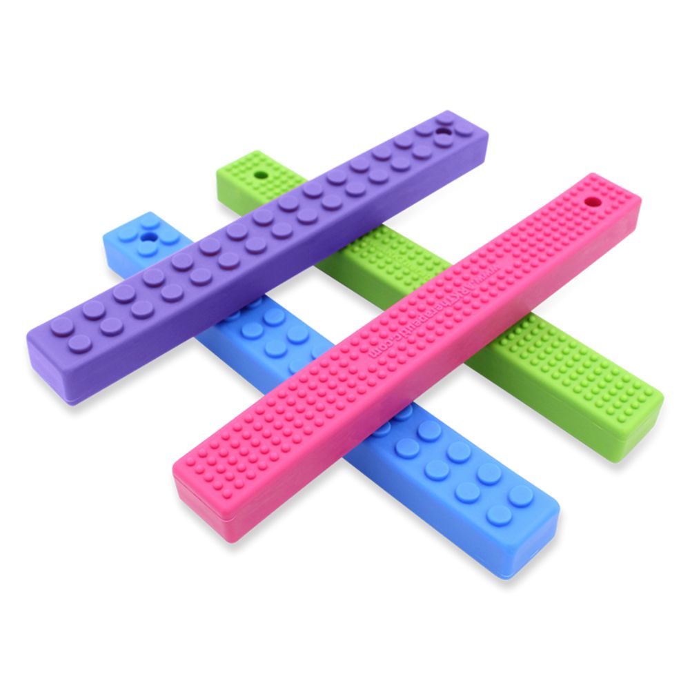 Its design makes it easy to grip, especially for older children, teens or adults. This teether is a safe tool for those who need to bite and is an effective way to help calm, self-regulate and focus. It is long enough to reach the posterior molars for proprioceptive input to the jaw and masseter muscle.
