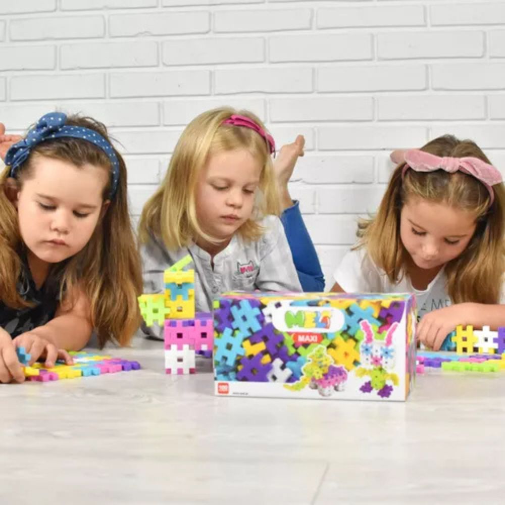 La colección Meli Maxi ofrece diferentes formatos: desde cajas de 50 piezas como esta hasta sets más grandes o maletines de transporte. Todos ellos se pueden combinar para ampliar las posibilidades de juego y lograr creaciones más elaboradas.