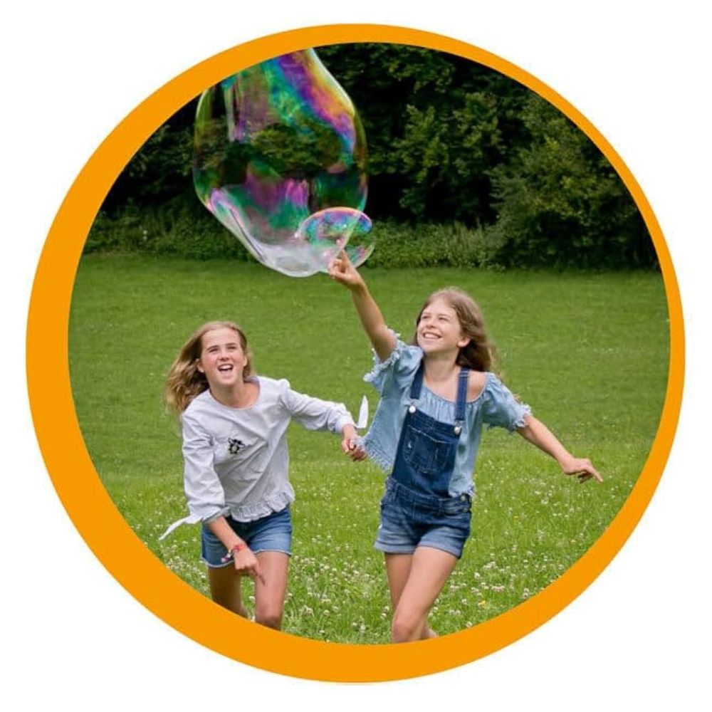 Las pompas de jabón gigantes invitan al movimiento, al juego activo y a la experimentación al aire libre. Favorecen la coordinación, la atención visual y la exploración del entorno, además de ser una actividad lúdica muy atractiva para compartir en grupo.