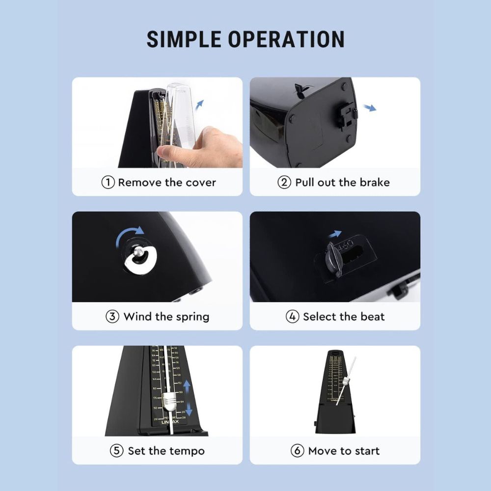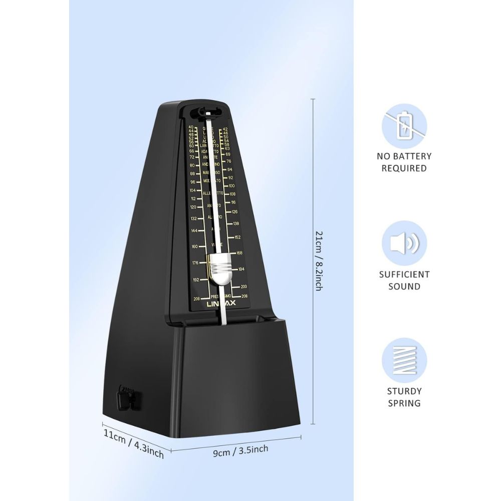 Squisita struttura meccanica. Adottando una dettagliata struttura a molla, il metronomo fornisce ritmi e battiti precisi senza bisogno di batterie. Basta impostarlo manualmente e iniziare ad esercitarsi. Resistente e rispettoso dell’ambiente.