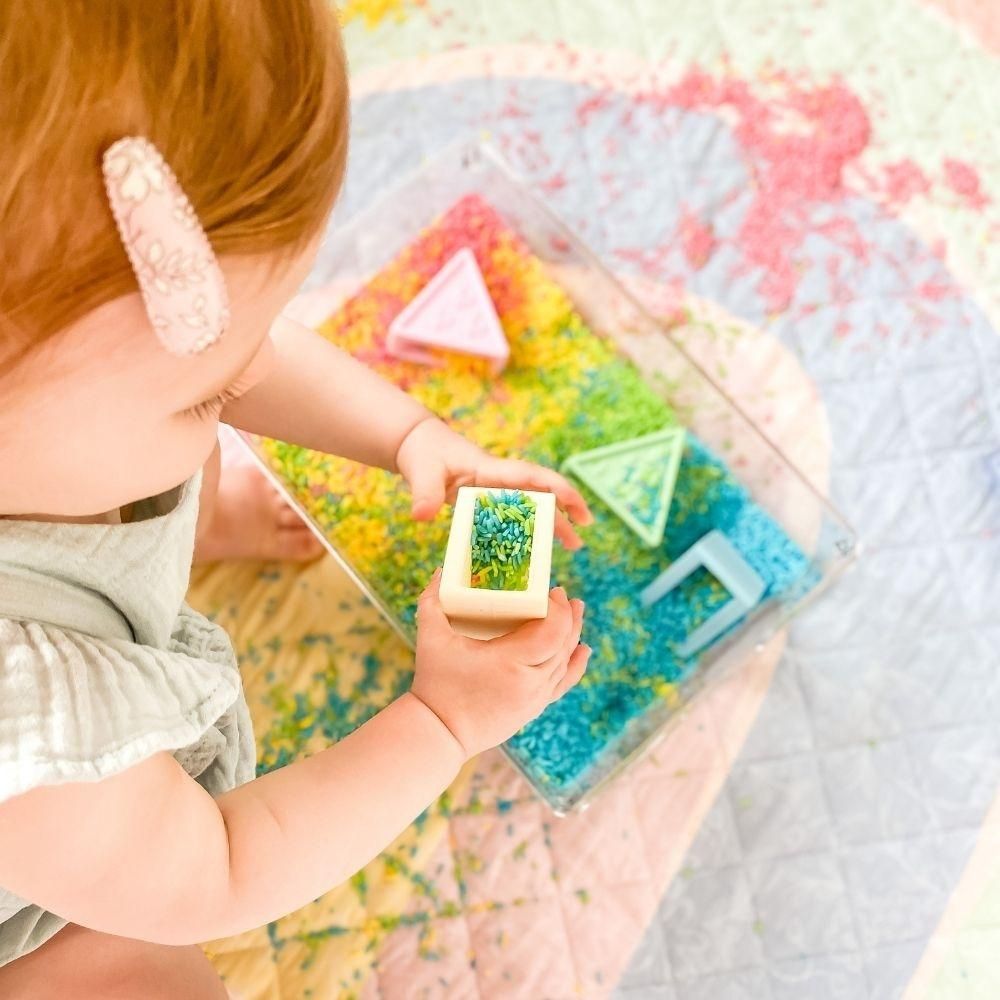 Además, su interior hueco amplía las posibilidades de juego: pueden utilizarse como vasitos para llenar con agua en el baño, con arena en la playa o con tierra en juegos simbólicos. Esto convierte a Triblox en un recurso versátil que evoluciona con el desarrollo.