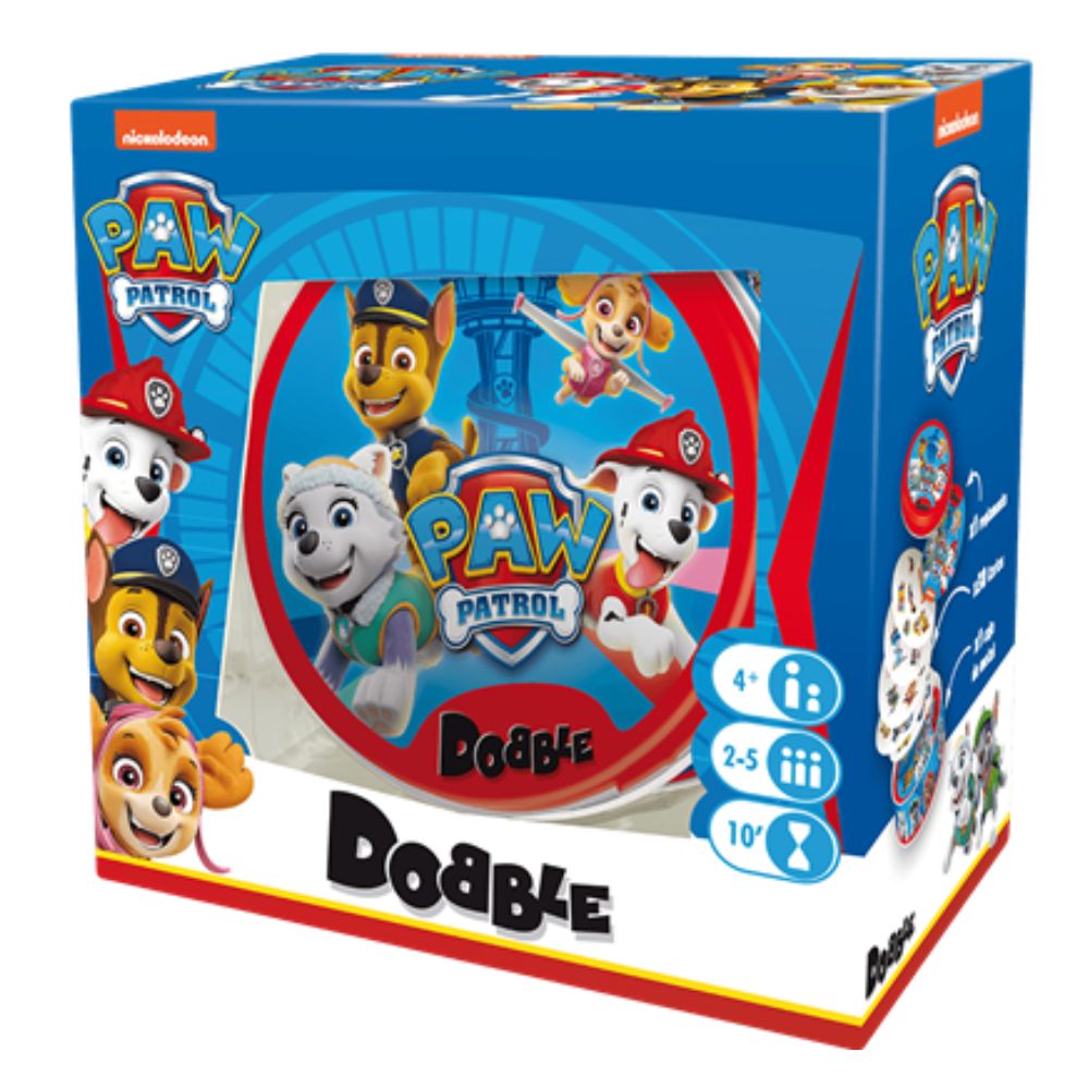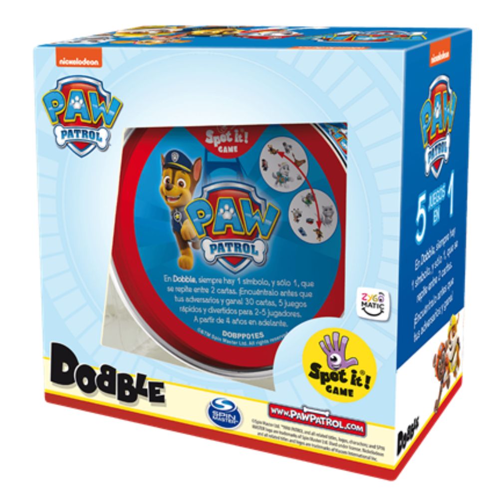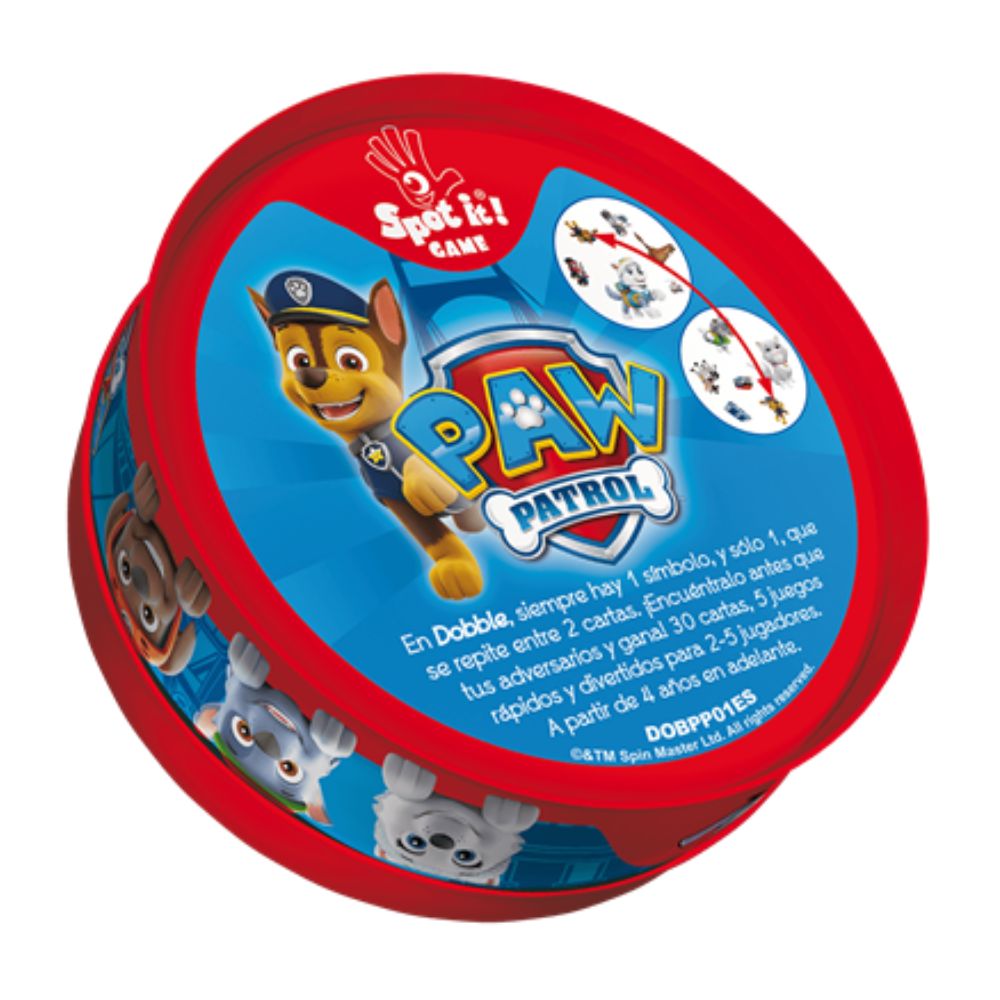 Dobble Patrulla Canina de Asmodee es un juego de cartas de observación y velocidad en el que los jugadores deben encontrar el único símbolo idéntico entre dos cartas. La forma y el color son los mismos, aunque el tamaño puede cambiar. Quien lo vea primero, lo nombra y sigue jugando.
