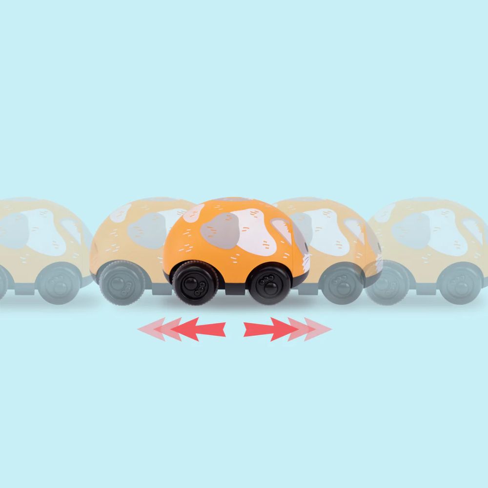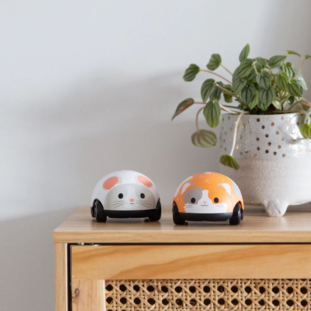 Basta con colocar el gato o el ratón sobre una superficie lisa, tirar/presionar suavemente hacia atrás y soltarlos para que empiecen a rodar. El bebé se sentirá naturalmente atraído a seguirlos, lo que convierte este juego en una oportunidad perfecta para reforzar el gateo o los primeros pasos.