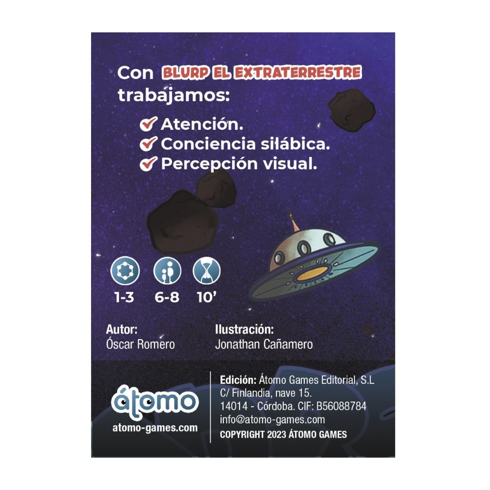 Un juego de mesa educativo para trabajar letras y atención. En este juego, los jugadores ayudan a Blurp, un simpático extraterrestre, a entender nuestro idioma. A través de diferentes dinámicas, se fomenta el reconocimiento de letras, la formación de palabras y la atención visual, convirtiéndolo en una herramienta muy útil tanto en casa como en contextos educativos.