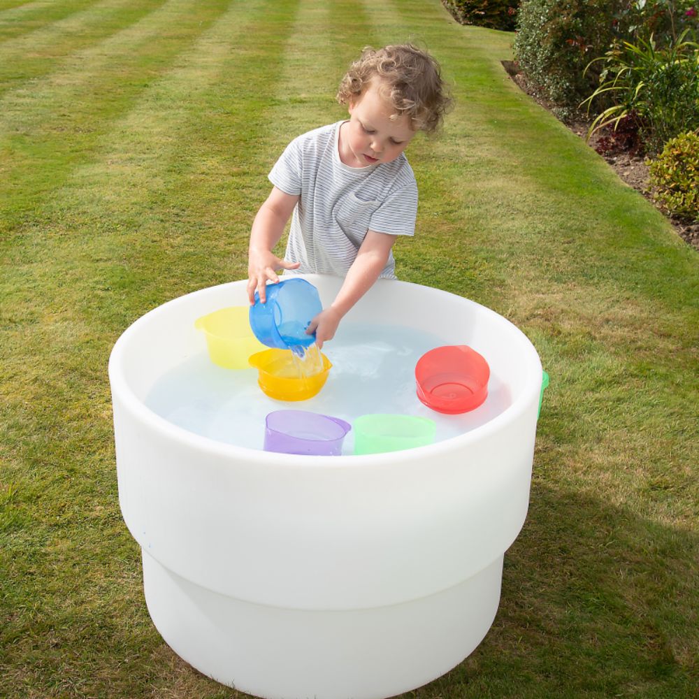 Los cuencos de colores translúcidos para verter líquidos de Tickit son un recurso versátil y atractivo que invita a los niños a experimentar con el agua, los colores y las texturas. Gracias a su forma redondeada, asa cómoda y pico vertedor, facilitan el control del vertido y promueven la autonomía y precisión en los movimientos.