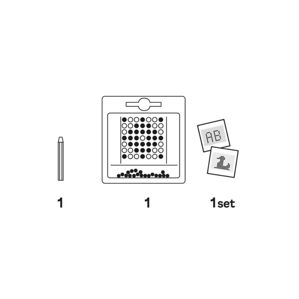 El niño debe colocar el lápiz magnético sobre la superficie plástica transparente. Después, selecciona la ficha deseada y la arrastra suavemente hasta la posición que prefiera. Así puede diseñar figuras, letras o patrones según su imaginación.