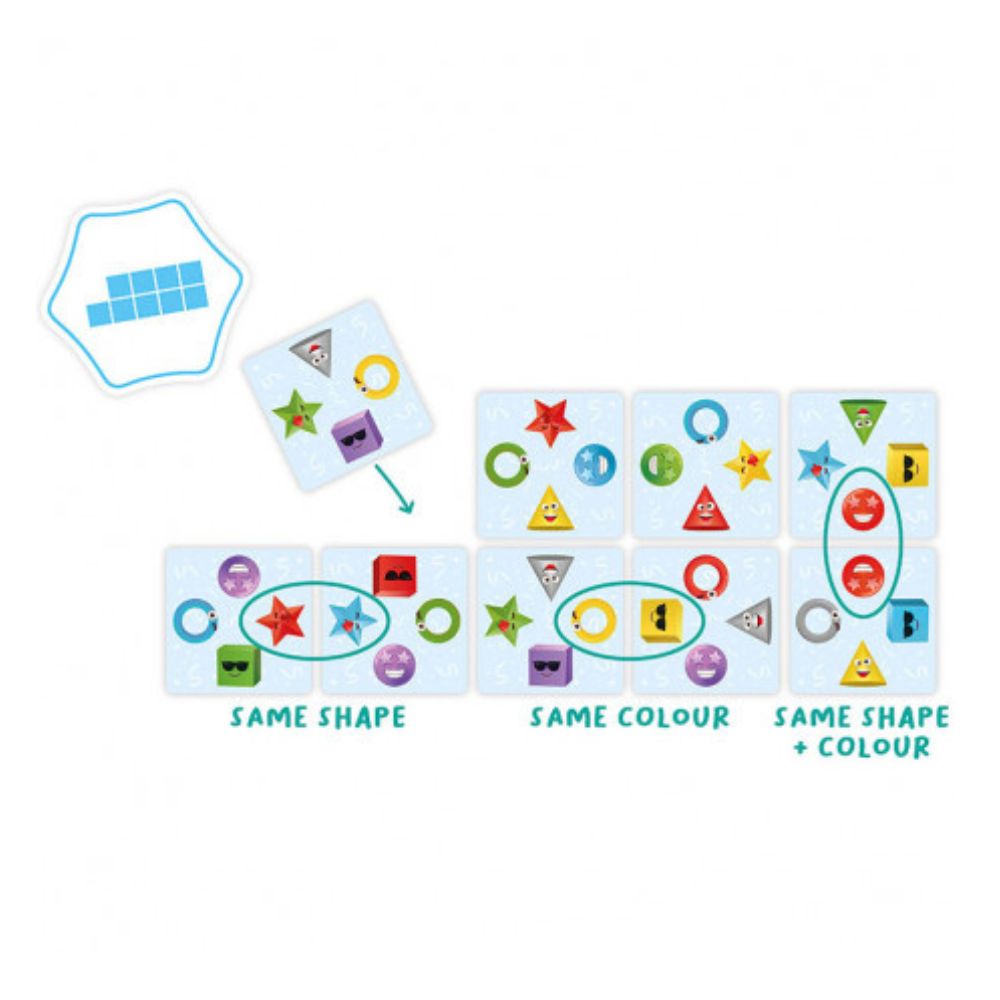 Se coloca en el centro la carta objetivo y cada jugador usa sus cartas para reproducir el patrón lo más rápido posible. Las coincidencias pueden ser por color o por objeto, y gana el jugador que complete más patrones correctos.